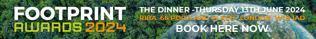Winners will be announced at the Footprint Awards Dinner on Thursday 13th June 2024 at The Royal Institute British Architects (RIBA) in Portland Place, London W1. Bookings HERE